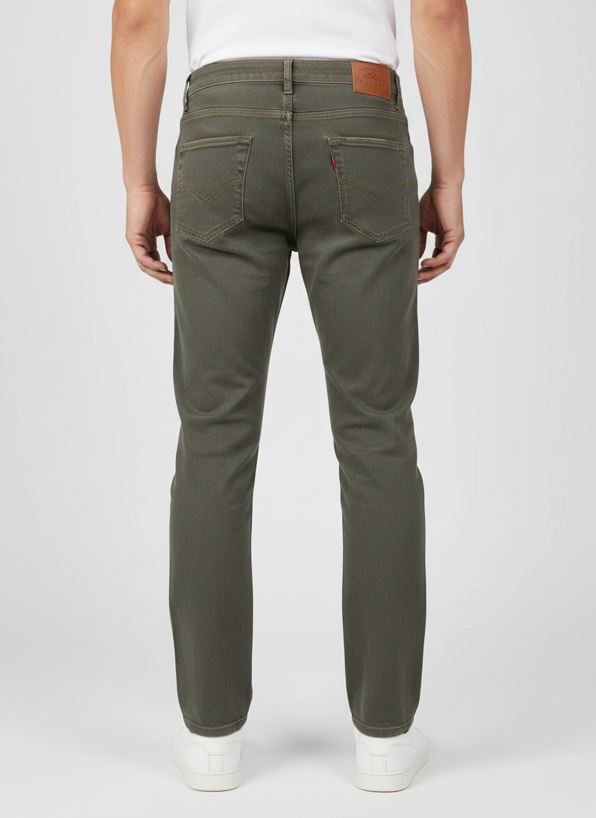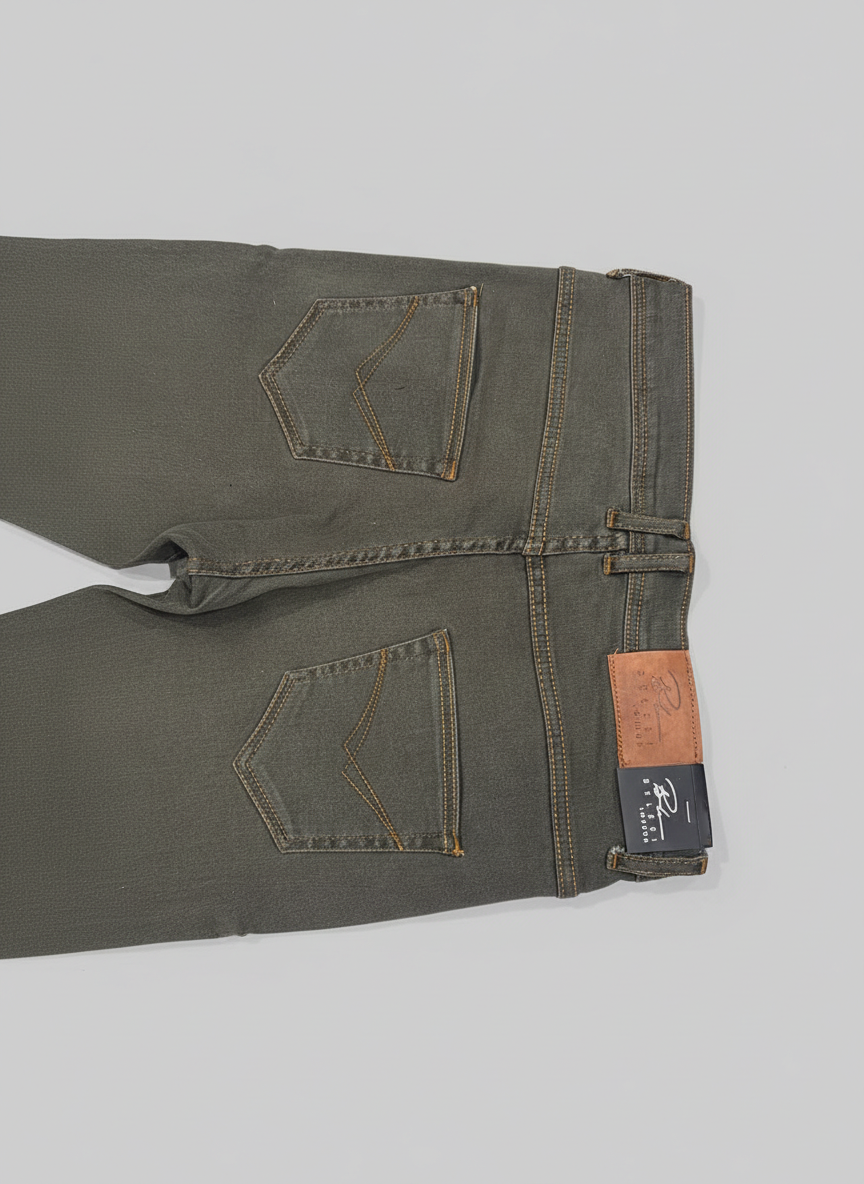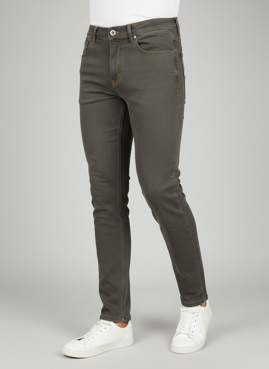 Men’s Olive Green Denim Jeans are designed for versatile styling and everyday comfort. The neutral tone pairs easily with various outfits, while the stretch fabric ensures ease of movement.