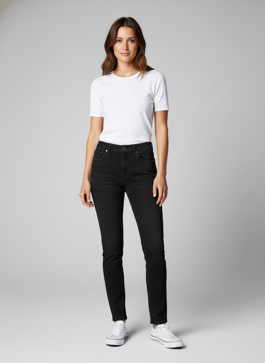 Women’s Black Denim Jeans offer a timeless look with a flattering slim fit. Crafted from premium stretch denim, they ensure all-day comfort while delivering a sleek, modern, and versatile style suitable for any occasion.