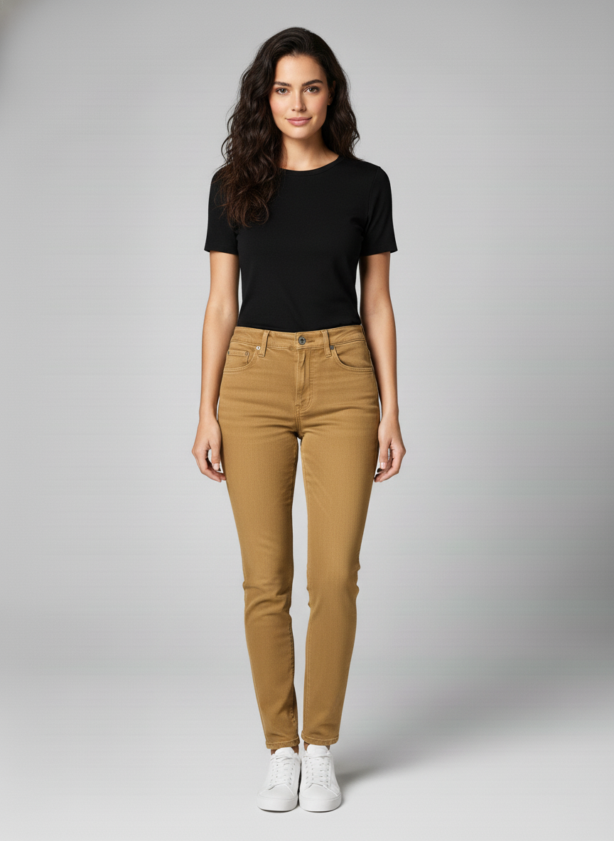 Women’s Skin Mustard Denim Jeans are designed for bold and fashionable styling. Crafted from durable stretch denim, they provide comfort and a flattering fit for daily wear.